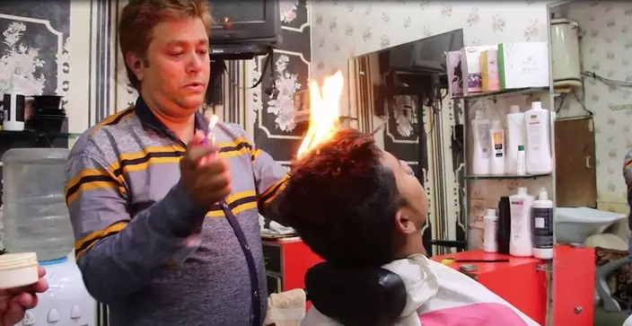 印度一個理髮師使用獨有的火燒技術,為顧客「燒」出各種髮型,理髮過程睇得出好刺激新奇,但坐在這裡剪髮的人,看見一把火在頭上燒,初來報到的都要有一點勇氣。