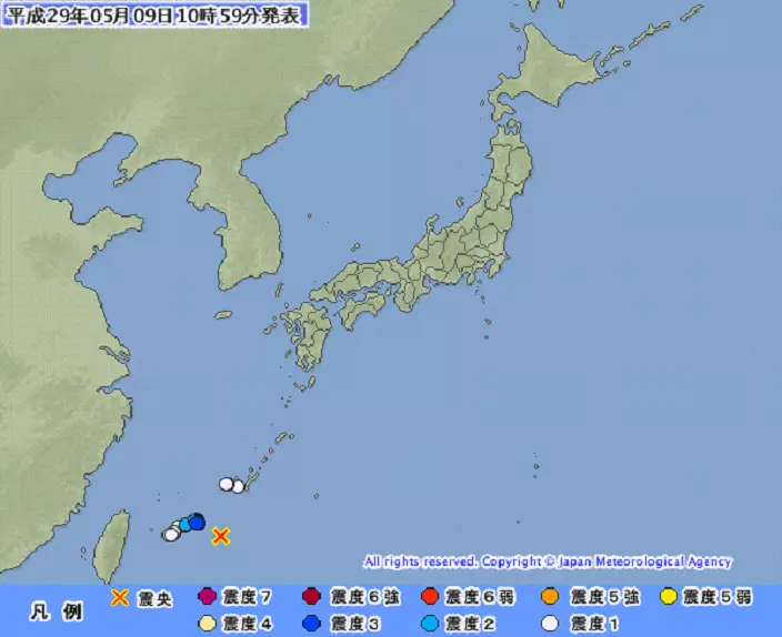 沖繩對開海域發生6.4級強烈地震(日本氣象廳圖片)