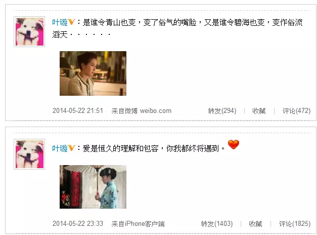 霍建華否認戀情,但葉璇借用《風雲》的歌詞疑似回應和霍建華的戀情:「是誰令青山也變,變了俗氣的嘴臉,又是誰令碧海也變,變作俗流滔天……」有網民將後面的歌詞補上:「風中仍共你痴癡愛,在未讓暴雲壞諾言,即使那海枯青山,陷與你的約誓也不變遷。」並大膽猜測葉璇是希望傳媒多些空間,祝福他們來之不易的戀情。