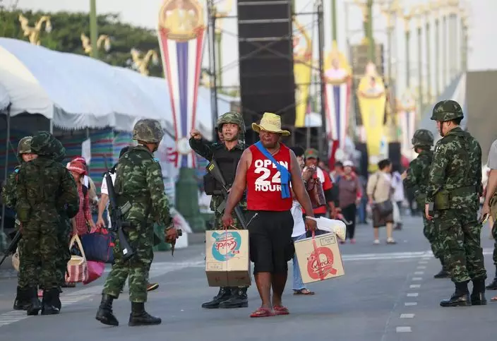 泰國軍方周四發動政變接管政府後,周五早上傳召已被推翻下台的前首相英祿、前政府班子成員、為泰黨多名領袖和三名他信家族成員等向軍方報到,英祿及她的姐姐、姐夫現身後被軍方扣留。陸軍也下令禁止一百五十五名政治人物及活躍分子離境。