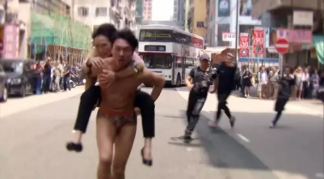 王浩信當街裸跑追唐詩詠一幕成為今集一大亮點(無綫截圖)