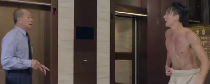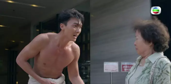 只圍著毛巾就跑出去追Cherry,難怪看更也被嚇呆(無綫截圖)