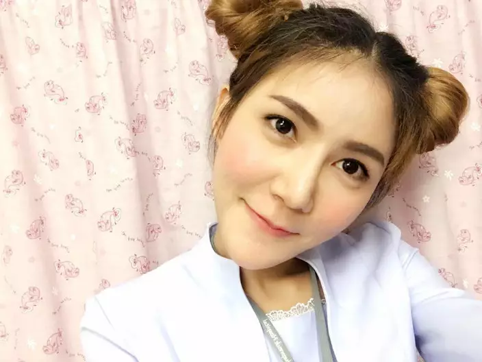 泰國一位索護士的工作照近日在網上熱傳,她長相甜美,坐在凳上優雅轉身,將S型身材表露無遺,加埋長腿令宅男like爆。但網民起底更多索照發現,女神竟然露齒傻笑,露出牙箍,氣質大不相同,宅男都睇到傻眼!