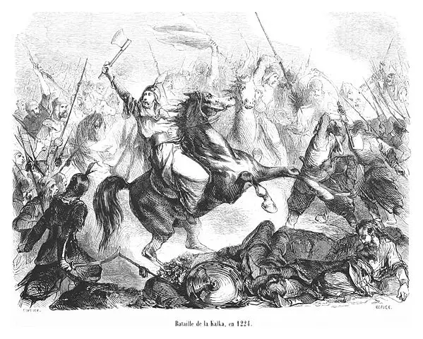 西方筆下的迦勒迦河之戰,被西方視為哲別軍旅代表作。 (網上圖片)