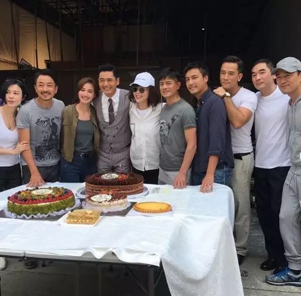 在工作中度過生日的發哥周潤發與郭富城、方中信、張靜初、吳嘉龍、孫佳君、張建聲、周家怡等人拍電影《無雙》,劇組特別為發哥準備五個蛋糕賀壽,齊齊開心影大合照。