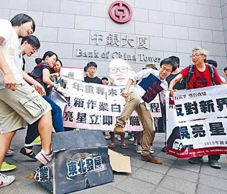 另外,來自「土地正義聯盟」、「捍衛農村青年陣綫」、「學聯」和社民連等二十名示威者,昨遊行到吳亮星任職的中國銀行總部,批評吳亮星有重大利益衝突,要求他辭去財委會主席或中銀職務。