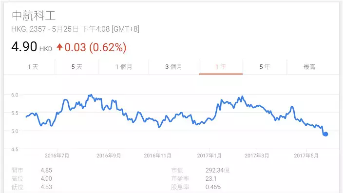 早前提過中航科工如果跌近一年低位(之前低位是5.04元),可以吸納。但近日已跌穿了一年低位,週四收4.9元,早兩日最低見過4.77元。中航科工子公司中航電子近期發行可換股債券,集資24億元,表面看,也不見得這是甚麼負面消息。