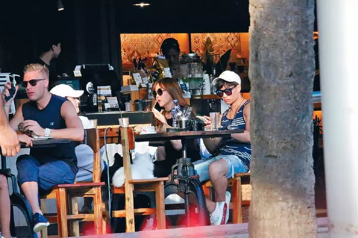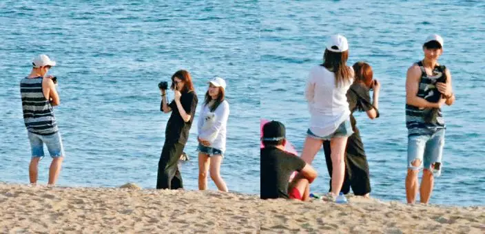 周二下午四點半,緋聞情侶加電燈膽三人組現身淺水灣Coffee Shop,阿Moon和大孖一齊坐,陳瀅就和兩愛犬坐一邊,三個人話題不多,大約半個鐘,大孖就召喚陳瀅出去影相。其後全身黑加有腳傷的阿Moon埋單離開,三人兩狗行去沙灘。
