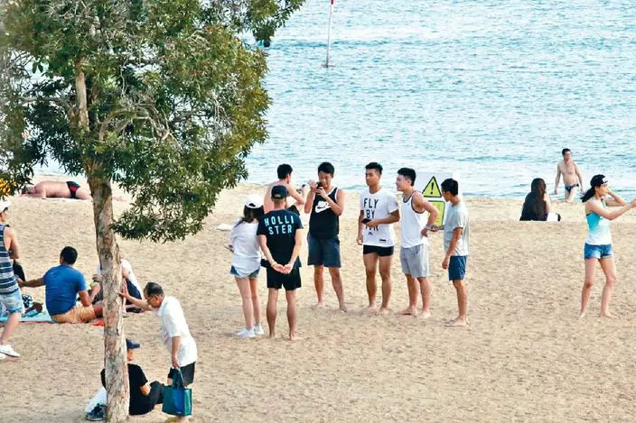 玩了近一個鐘,三人組離開,其間有男泳客捉住陳瀅影合照,阿Moon都有,大孖就在一邊等,再貼住阿Moon行去攞車。因為發現有記者,大孖主動坐後座,陳瀅則坐副駕駛座,由腳傷的劉佩玥揸車離開。