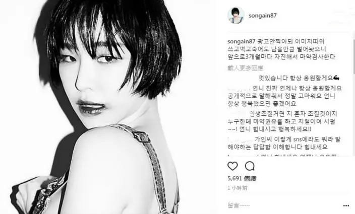 佳仁坦言自己以後會接受毒品調查 (網上圖片)