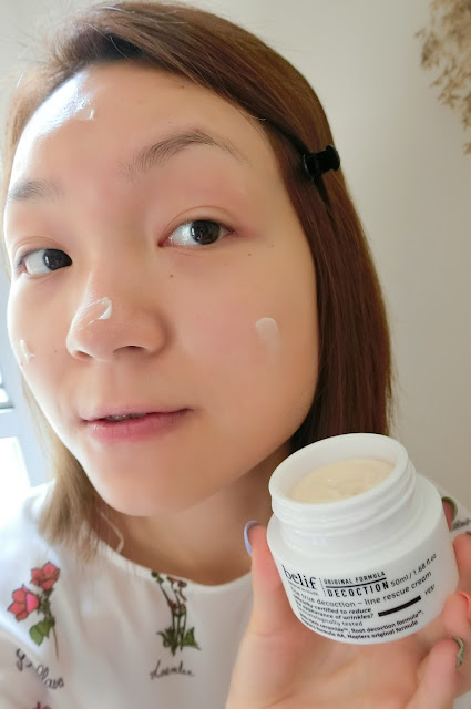 使用精華後,取適量的面霜,大概兩顆珍珠分量