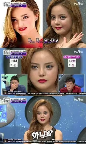 這名叫洪如凜的模特自稱第一次在雜誌上看到Miranda Kerr,就喜歡上對方的童顏,並覺得她非常性感,因此下定決心要以對方為整容人辦,在鼻子及眼睛動刀,變成韓版Miranda Kerr。