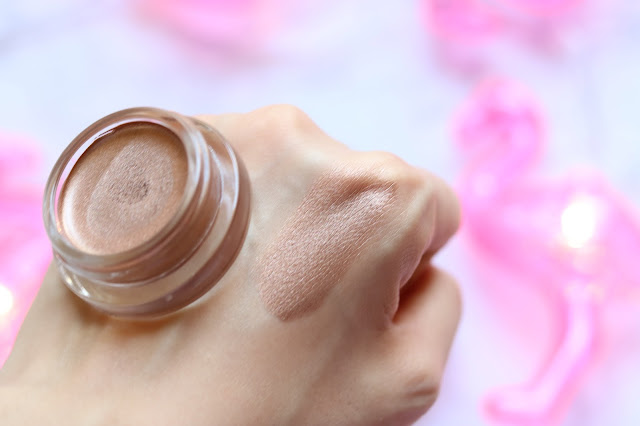 這款眼影霜帶有珠光光澤,質地甚為柔軟易推