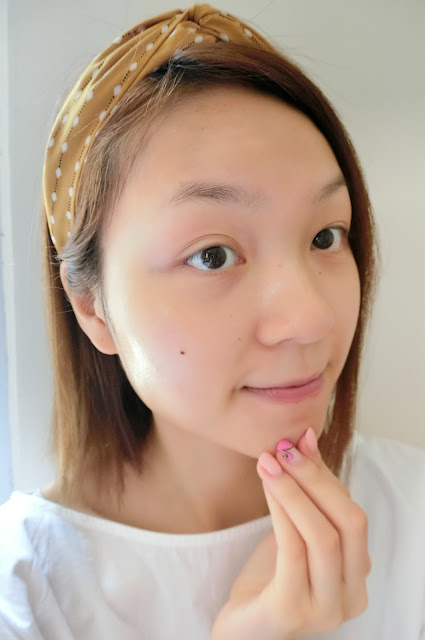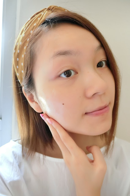 約20至30分鐘撕下面膜,隨即見到肌膚潤潤,還釋出光澤