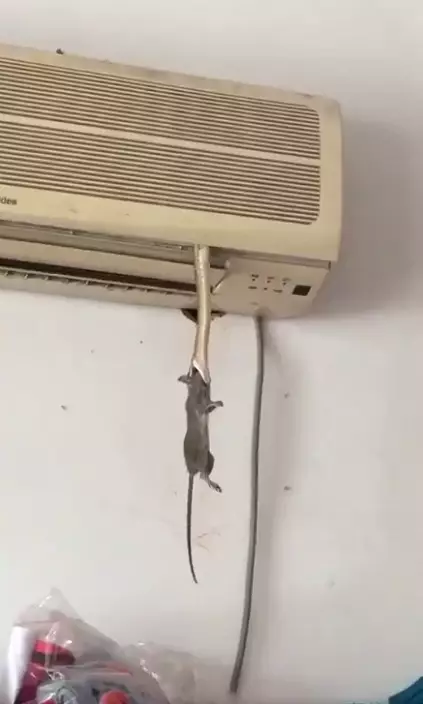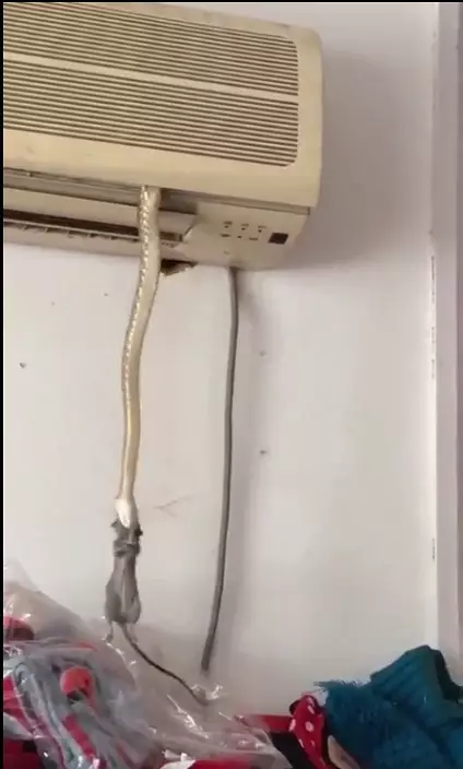 蛇同老鼠都是比較得人驚的動物,未必人人喜歡,尤其在家突然看到蛇或老鼠,難免會驚。近日網上流傳一段影片,片中一條蛇從冷氣機冒出,叼走一隻老鼠再鑽回冷氣機內。