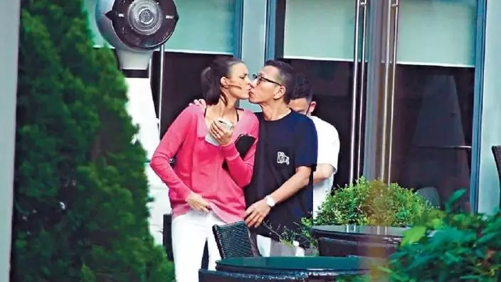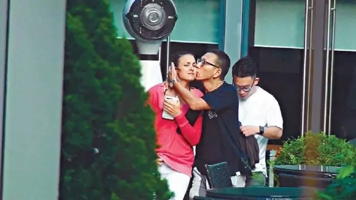 楊受成兒子楊其龍(Gilbert)日前陪老婆Martina撐枱腳,離開之時突然肉緊攬實老婆咀嘴,相信昔日的PlayBoy已變成了顧家男。