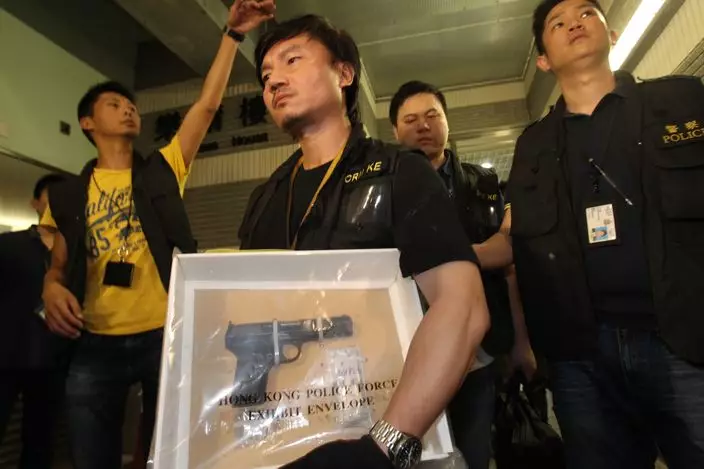 警方在疑犯單位內檢獲兩支曲尺型手槍和啹喀刀,以及在疑犯身上檢獲8發子彈。其中現場檢獲的「黑星」手槍,懷疑是殺人兇器,黑星雖然被指性能不可靠,但由於容易得到,一直為黑道中人使用,其穿透力強,甚至可射穿一般避彈衣。探員將刀槍檢走化驗及追查來源。