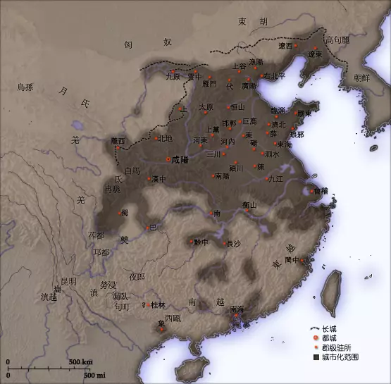 公元前210年,秦朝的疆域 (網上圖片)