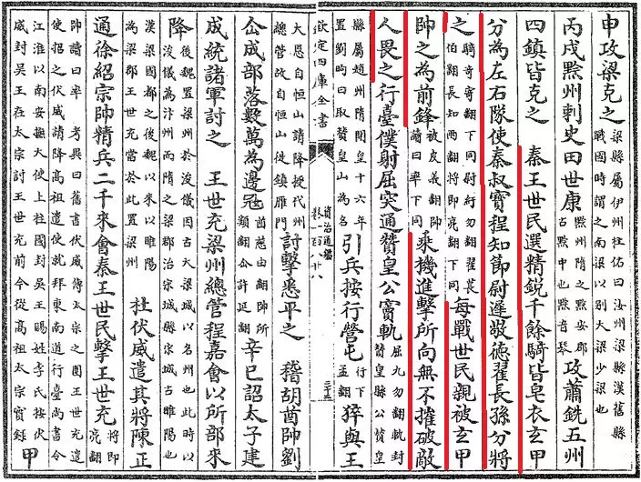 北宋司馬光主編《資治通鑑》載:「秦王世民選精銳千餘騎,皆皂衣玄甲,分為左右隊,使秦叔寶、程知節、尉遲敬德、翟長孫分將之。每戰,世民親披玄甲帥之為前鋒,乘機進擊,所向無不摧破,敵人畏之」。「玄甲騎」人員結構複雜,事緣當李世民掃蕩一個地方勢力,就將當地的比如隴西、涼州等地的精銳騎兵納入麾下,甚至包括部分突厥騎兵。再配合不少猛將騎將歸降-尉遲敬德、秦叔寶、程咬金(枝節)等,在這個兵將基礎上精選出來的「玄甲騎」,必然是極其驍悍。據載李世民作為玄甲騎兵隊先鋒,同樣穿著黑甲,身先士卒,感覺出無堅不摧。