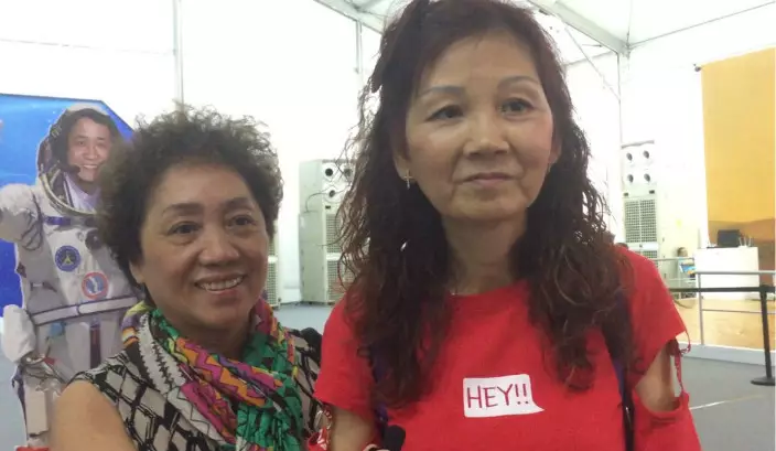 鍾小姐及鄺小姐均對中國航空技術感到好奇。(本網記者攝)