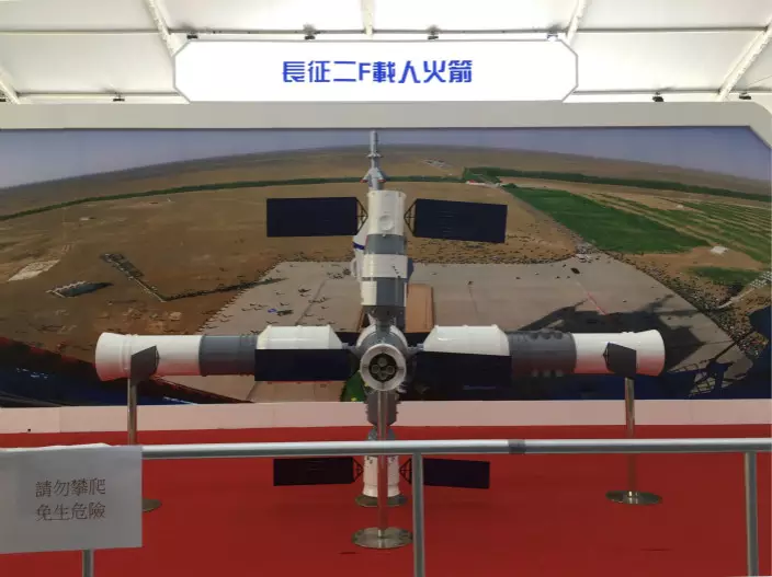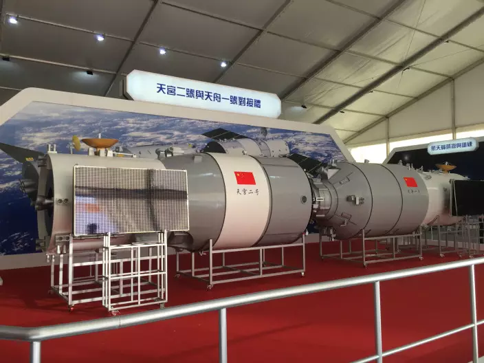 天宮二號與天舟一號對接體。(本網記者攝)