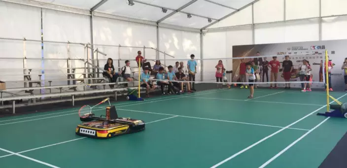 人類對機械人羽毛球世紀之戰。(本網記者攝)