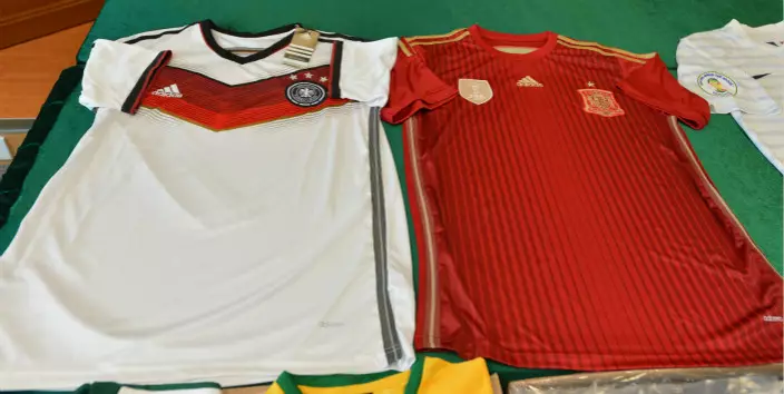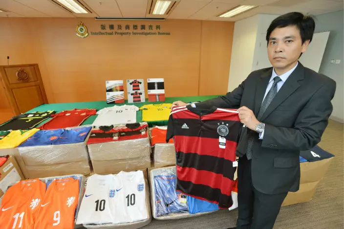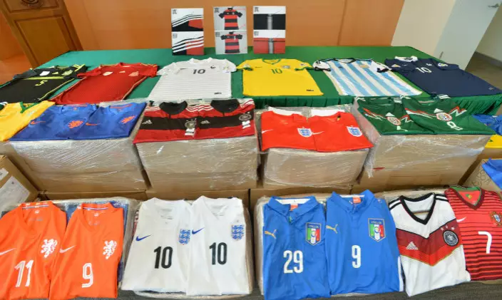 巴西世界盃下周四開鑼,足球熱潮升溫,冒牌國家隊球衣湧現,海關過去一個月已檢逾千八件,有十七歲中學生在「淘寶」購入冒牌球衣後再於社交媒體轉售;亦有內地不法商人以快遞服務,經香港走私冒牌球衣至歐美各國;今年首五月海關已破獲四十宗冒牌運動服裝案件,預計到年底至少增至八十宗,較上屆世界盃年搗二十一宗,料急增三倍。
