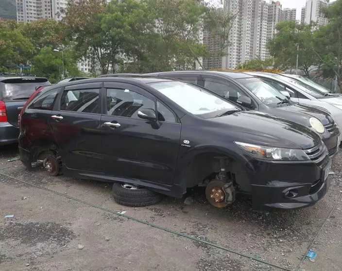 4輛私家車被拆去4個車轆。