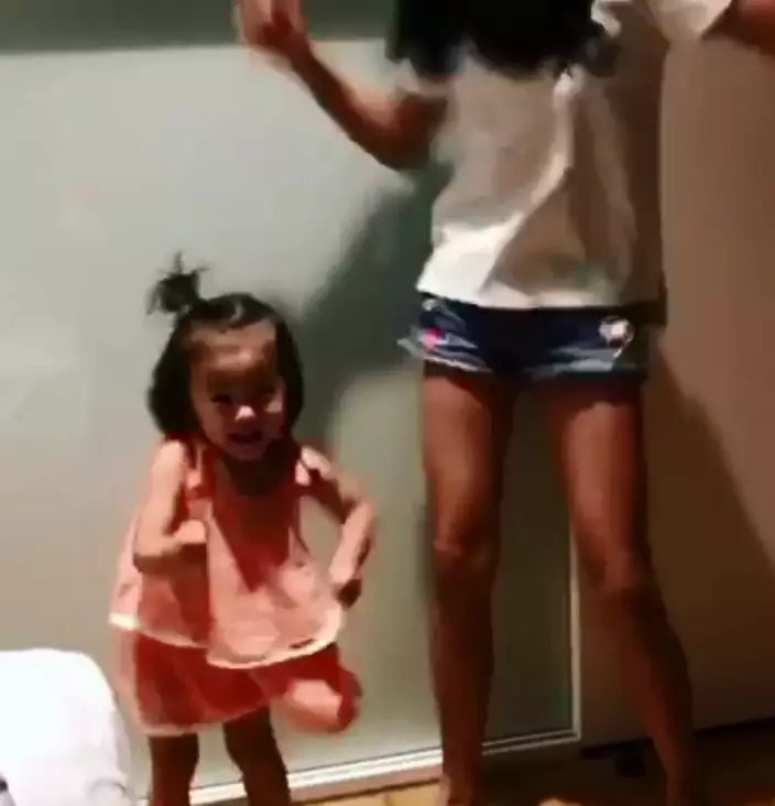 咘咘和梧桐妹搞怪跳舞。(網上圖片)