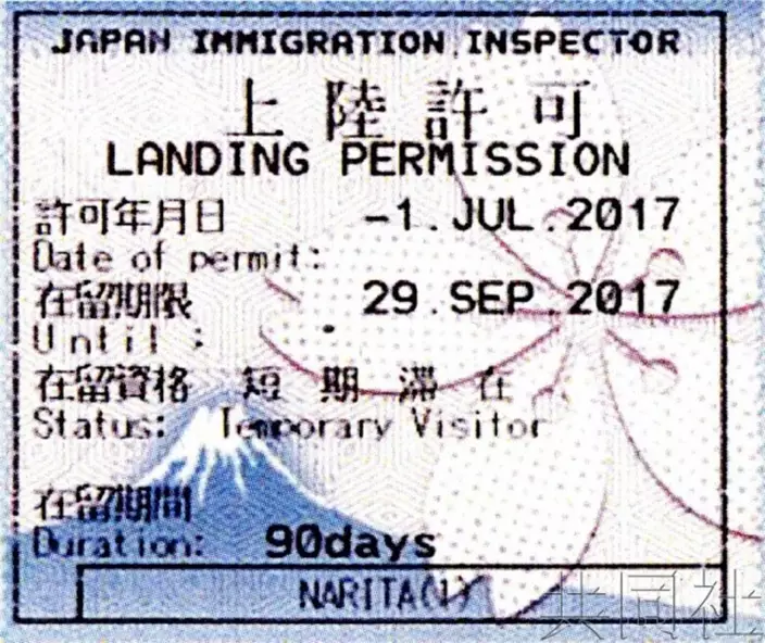 共同社引述法務省官員指,日本在2020年東京奧運及殘奧,希望改變「上陸許可證印」外觀,可以成為外國旅客想,到日本的契機。「上陸許可證印」從原本的「桐木」圖案,改成藍色「富士山」及「櫻花」花瓣,展現截然不同的特色,同時也是足以代表日本的象徵物,法務省官員強調,採用新型圖案的另一原因是為了讓人難以偽造。