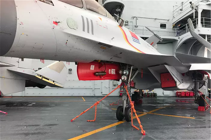 遼寧艦一共有4道攔阻索,均勻排列在甲板後部,其中任何一條都可以勾住飛機,在中國第二艘航母001A上,攔阻索減少到三條。