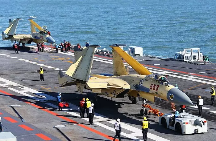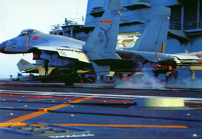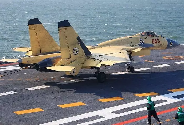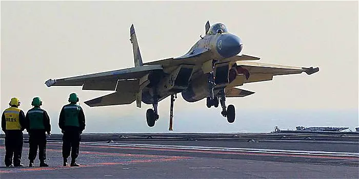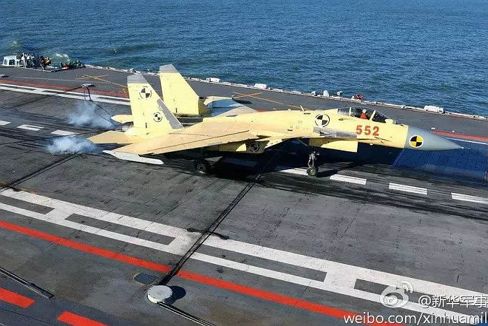 殲-15戰機成功鈎到攔阻索