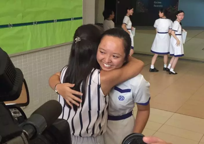 拔萃女書院「超級女狀元」誕生!林莉雯從校長手上接過成績表,獲悉取得八科「5**」驕人成績,不禁喜極而泣,與母相擁,場面感人!