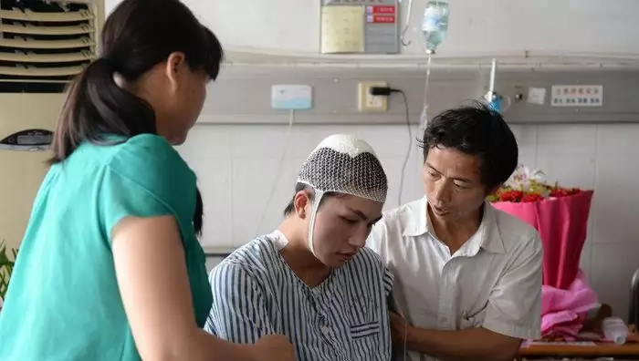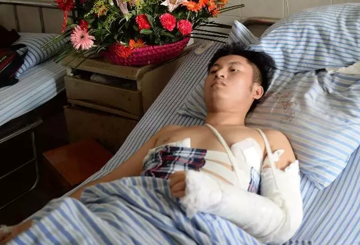 受傷學生柳艷兵(圖片來源︰新華網)