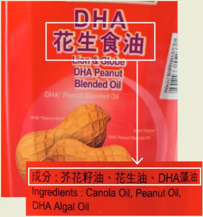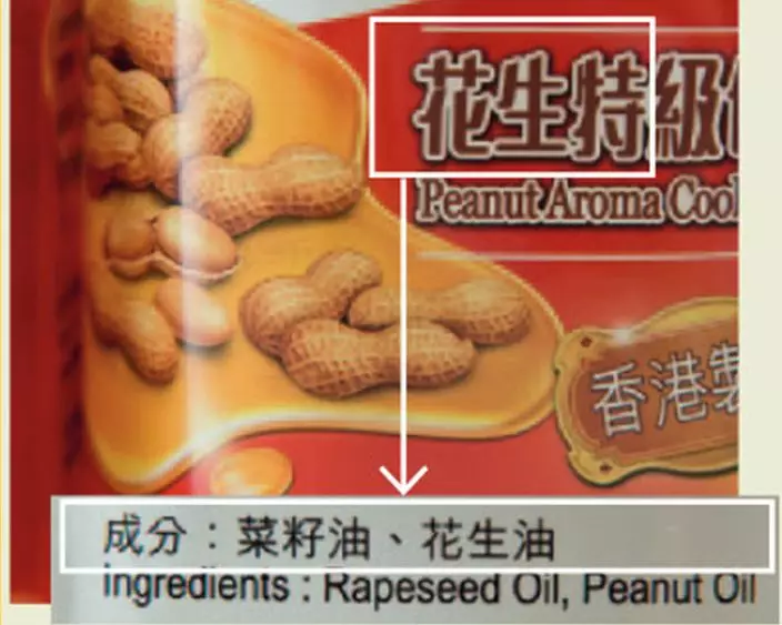 另外有樣本的名稱只提及「花生」而沒有「芥花籽」或「菜籽」等的字眼,包裝上的圖片亦只展示花生的圖案。消委會質疑,消費者有機會因產品名稱而購買了與其成分比重不符的產品。