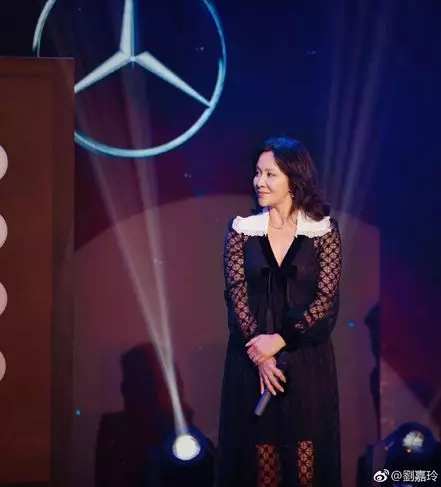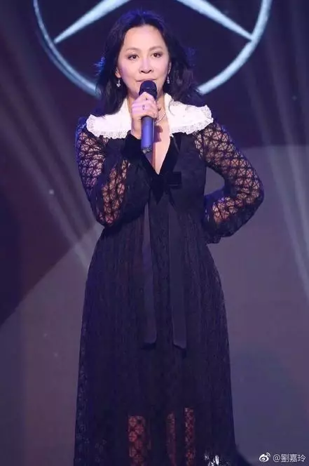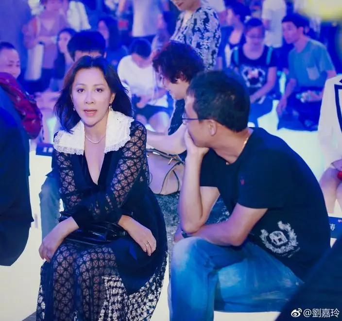 劉嘉玲和Super Girls成員Heidi於平行時空下,齊齊穿上意大利品牌Alberta Ferretti的一條黑色V領透視長裙,二人隔空鬥美。