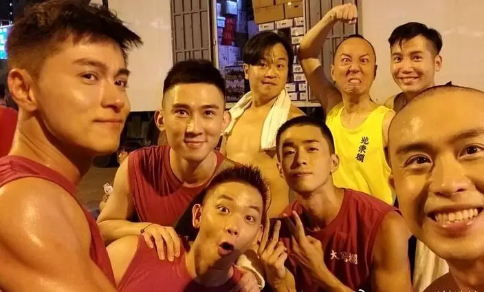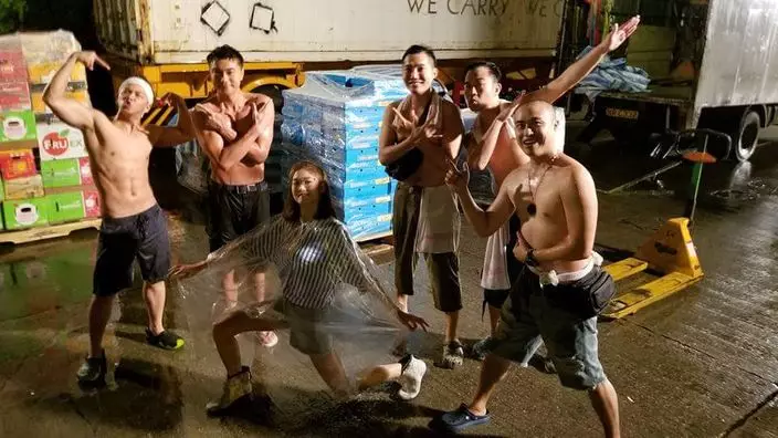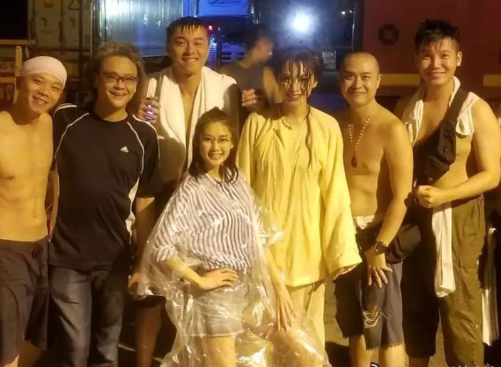 陳煒、岑麗香(香香)、黃浩然、林子善等人昨晚在3號風球下拍攝新劇《果欄中的江湖大嫂》,眾人齊齊濕身拍攝落雨戲,猛男赤裸上身騷肌圍著香香合照,非常搞笑。