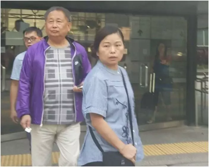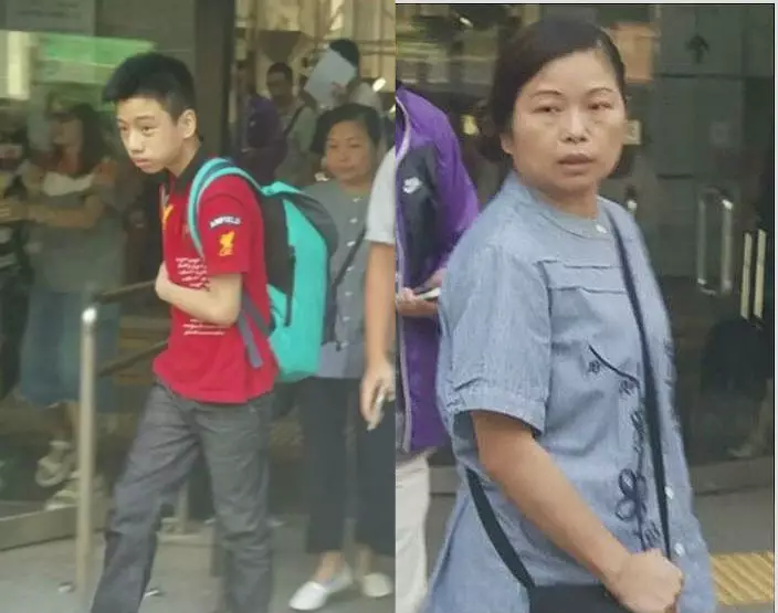 原告母親萬月玲(藍衣)及其兒子(紅衣)。