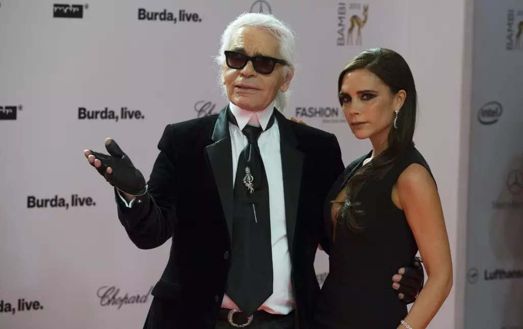 德國籍的世界時尚大師Karl Lagerfeld特意前來撐老友維多利亞,不但陪同全程走紅毯,更是擔任維多利亞的頒獎嘉賓。怪不得辣媽在臺上要獻上甜吻喇!