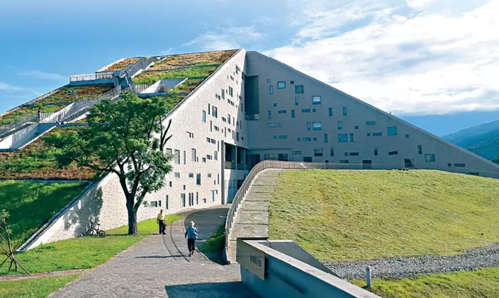 造價過億港元、佔地一萬三千平方公尺的圖書館擁有科幻外觀,獨特的三角體外形以及灰色牆身上布滿縱橫交錯不規則玻璃窗戶,感覺既似太空基地,又像一座神秘的金字塔。是否有 「學問要如金字塔」的寓意?館方負責人表示,建築其實正好比作台東的好山好水跟周遭的花東縱谷美景互相融合,只見利用清水模工法構建的丘陵牆身,會鋪上青草皮進行多層次的綠化,配合校園的翠綠草地和寧靜湖泊,不但沒為四周環境帶來違和感,更反而稱得上與大自然相互融和,能在如此優美環境下閱讀及學習,實在不能要求更多!