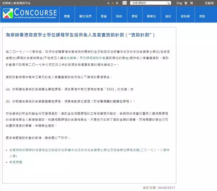 自資專上教育資訊平台網頁截圖