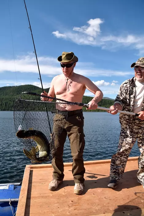 Footage released Saturday by Russian state television stations showed Putin steering an inflatable boat and fishing bare-chested with a rod, accompanied by Defense Minister Sergei Shoigu and other officials.