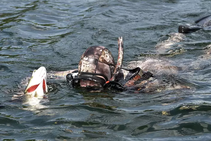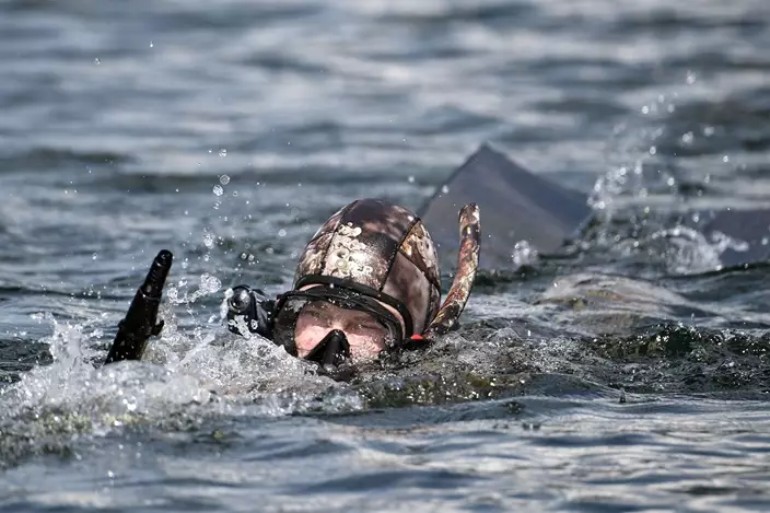 Action camera footage showed Putin moving under water in a swimsuit and shooting a pike. "It's very sly and cautious," the president said of his prey after getting out.