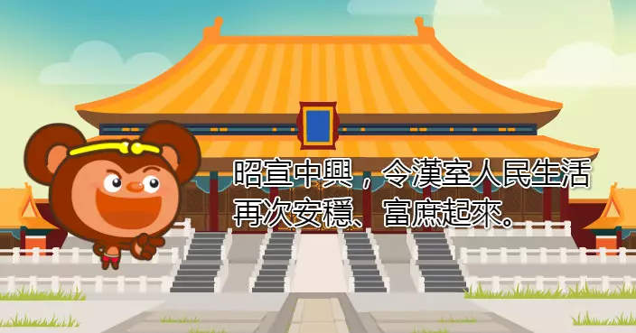 漢武帝在位期間,雖然令漢朝的國威傳至西域各國,匈奴不敢再入侵,但連年征戰,大大損耗了國力,人民生活並不好受。幸好,繼位的昭帝和宣帝,扭轉了這個局面。