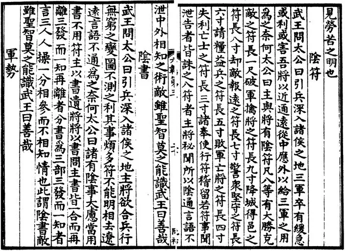 在中國人是世界上使用密碼最早的,而且手法五花八門。早在先秦時期,兵書《六韜》就記載了密碼學的運用,其中《陰符》和《陰書》便記載了周武王問姜子牙,關於征戰時與主將通訊的方式。太公曰:「主與將,有陰符,凡八等......」、「諸有陰事大慮,當用書,不用符。書皆一合而再離,三發而一知。」這裡所說的「陰符」,是以八等長度的符來表達不同的訊息和指令,將資訊轉變成敵人看不懂的符號。至於「陰書」方面,將書一分為三,分三人傳遞,要把三份書重新拼合才能獲得還原的資訊。