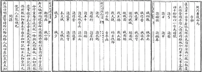 北宋時期,中國出現了用於軍事保密通信代碼。《武經總要》的制度十五中記載,北宋進士曾公亮曾蒐集了40個常用軍事短語,然後順序編碼:一、請弓;二、請箭;三、請刀......七、請馬;八、請衣賜;九、請糧料……四十、戰小勝。軍隊出征前,指揮部將用上述短語編碼的密碼本發給將領,約定用一首不含重複文字的40字五言律詩與密碼相對應。