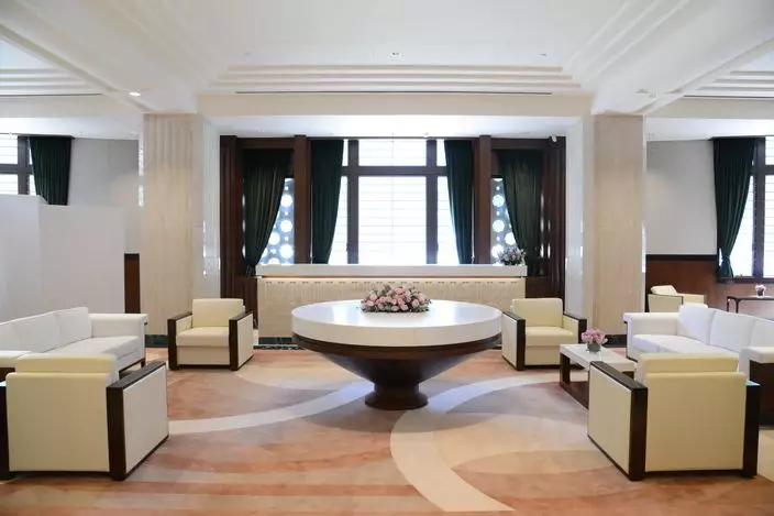 貝禮中說,舊中銀大廈大堂的四條支柱無法復修,故改為正方形柱子,並選用了米色主調的意大利雲石,配合中行總行的主調,予人溫暖的感覺。