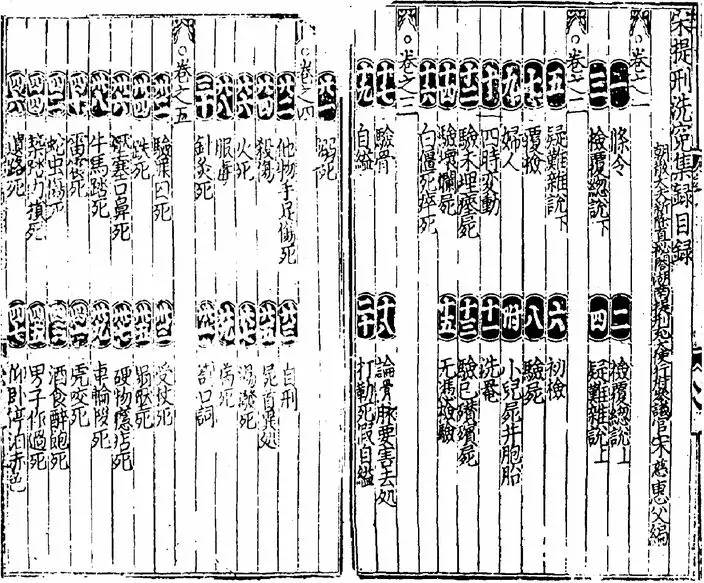 《洗冤集錄》目錄 (網上圖片)