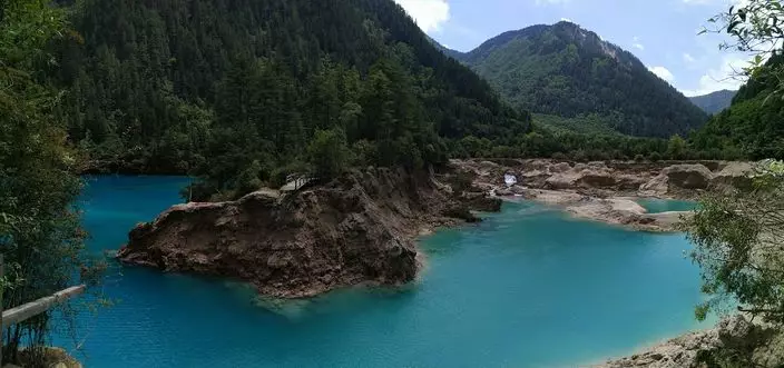 四川九寨溝7級地震後,九寨溝多個景區遭到災難性損毀,其中「火花海」更一度缺堤,流失大量湖水,露出淤泥樹枝。不過有内地網民近日親臨九寨溝,拍攝到「火花海」已經重新修復,重現碧綠湖水。