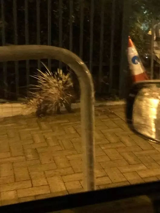 網民在28號凌晨近2時,貼出幾張從車上拍攝的照片,只見箭豬在行人路上遊蕩,似乎在找尋食物。而影片則似是行車攝錄器所拍,車輛沿著薄扶林道一直行,半路見到一隻身上長刺的生物在路中心出現,迤迤然橫過馬路。幸好車開得慢,沒有撞到牠,司機見狀亦停下來等牠過完馬路。